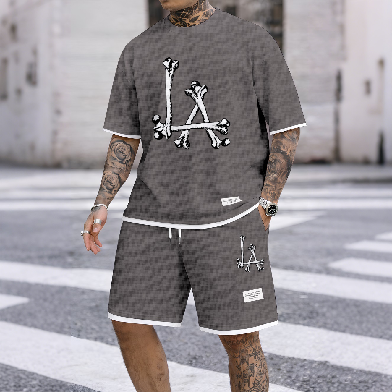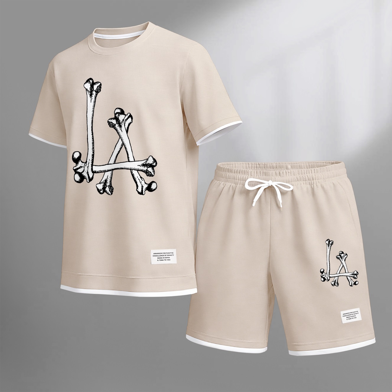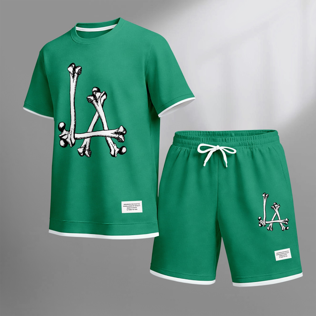 Men's Streetwear Skeleton Print Waffle Fabric Short-Sleeved Shirt And Shorts Set