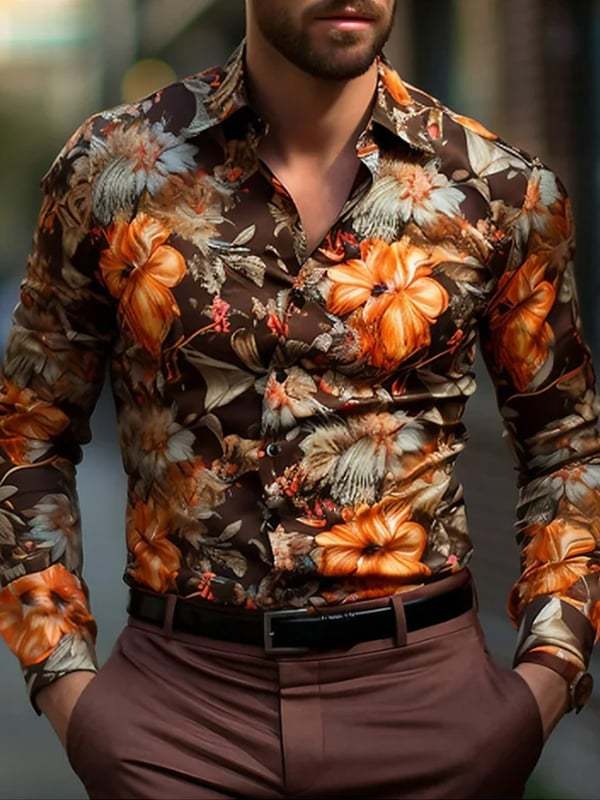 Men's Stripe Print Business Long Sleeve Shirt