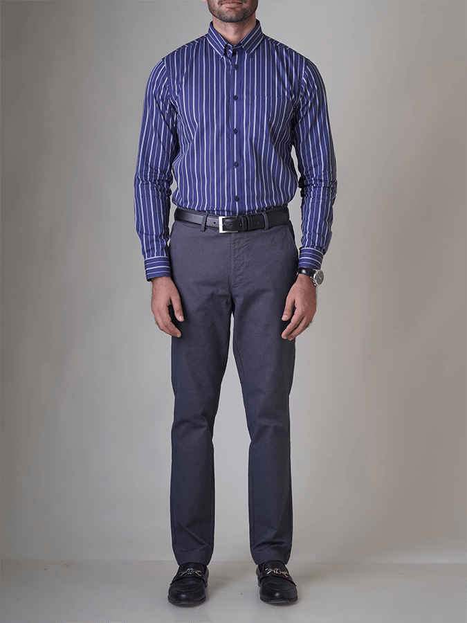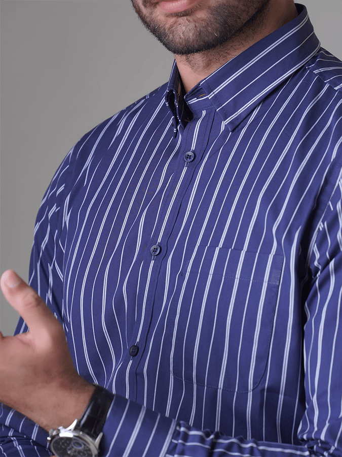 Men's Striped Design Pocket Business Casual Long Sleeve Shirt