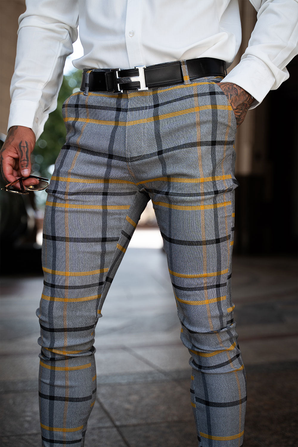 Invest in our men's striped skinny pants today and experience the perfect combination of style, comfort, and quality.