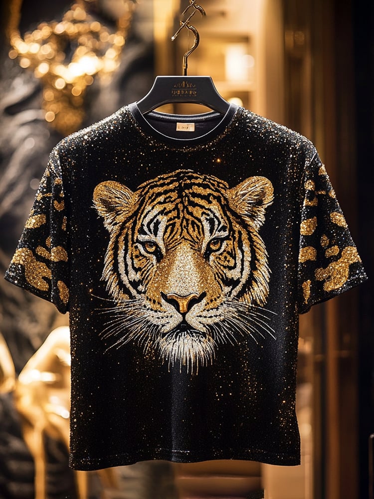 Men's Tiger Sequin Business Print Short Sleeve T-Shirt