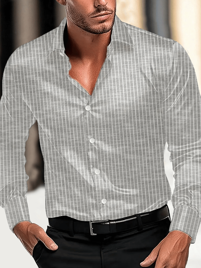 Men's Vintage Business Casual Printed Satin Long Sleeve Shirt