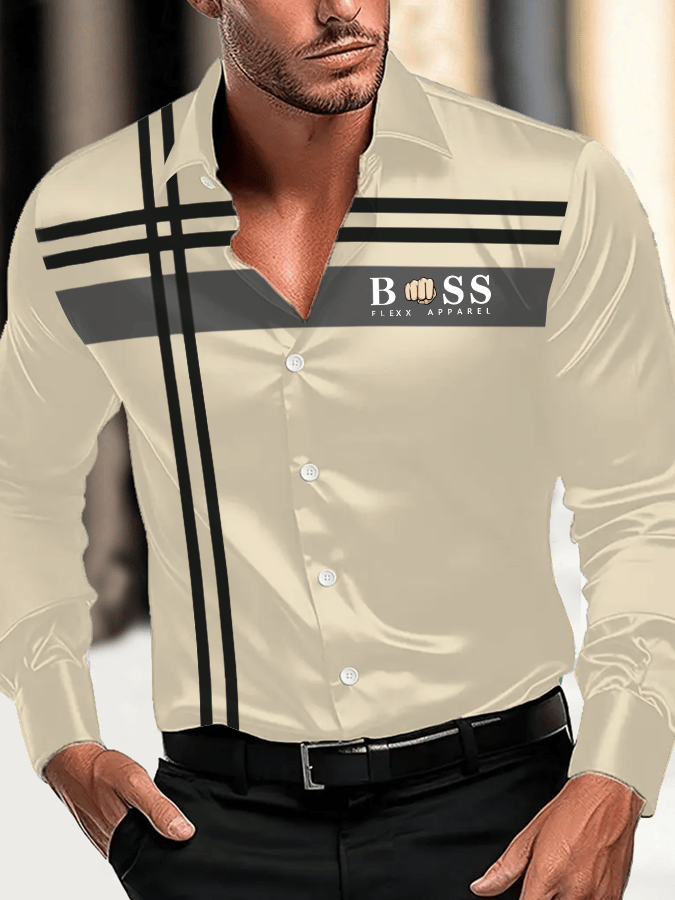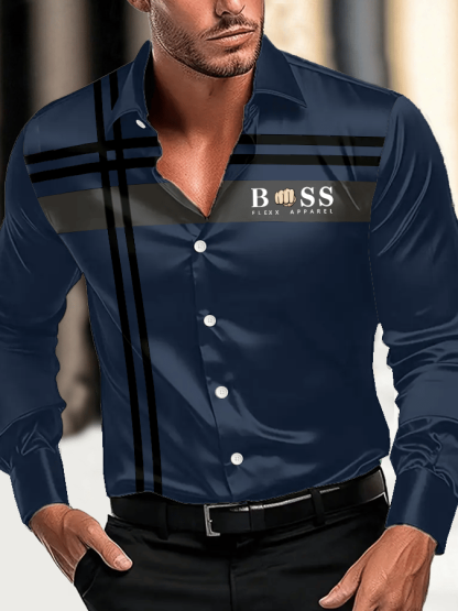 Men's Vintage Business Casual Printed Satin Long Sleeve Shirt