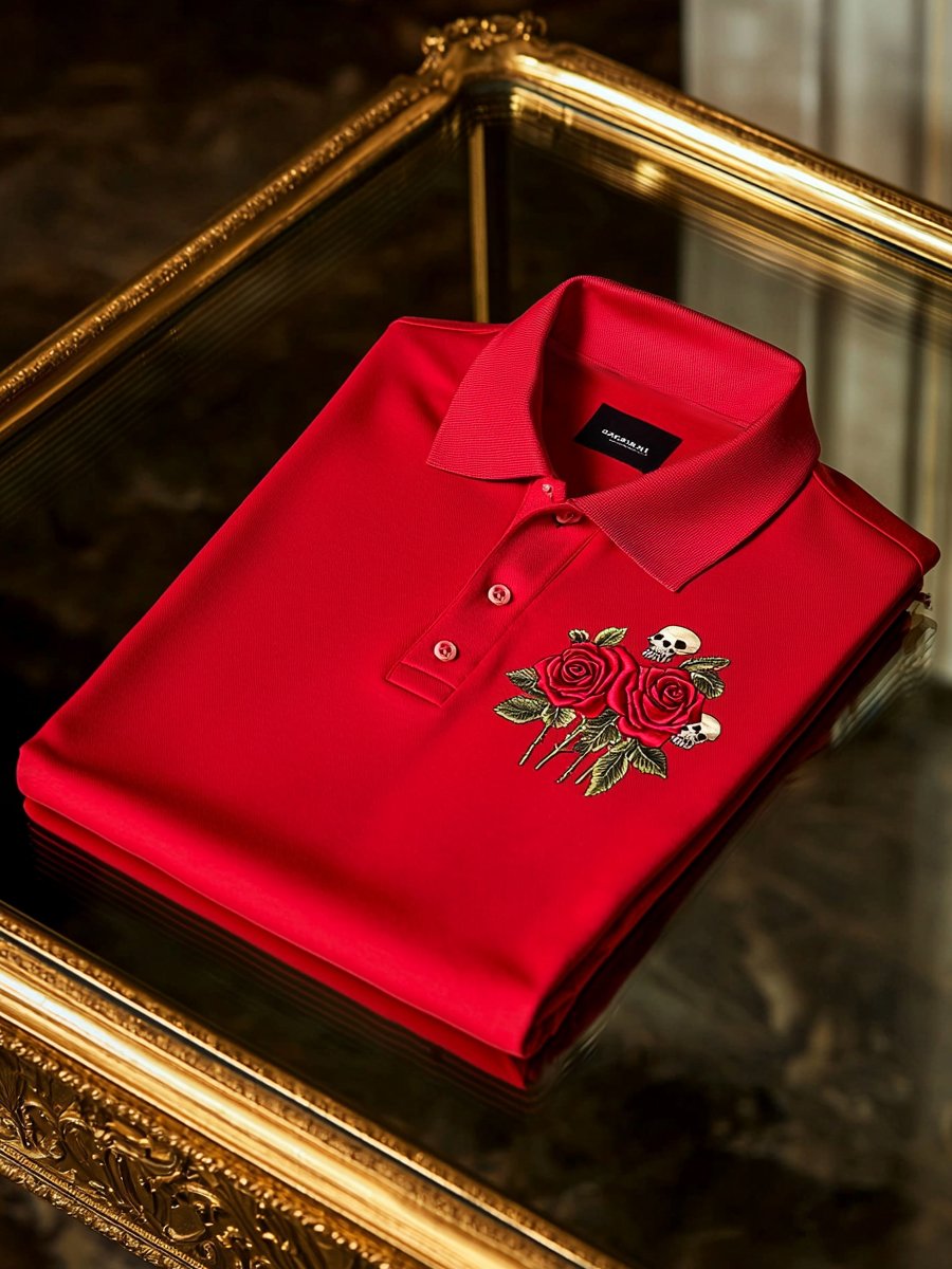Men's Vintage Casual Skull Button Short Sleeve Polo Shirt