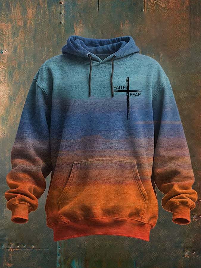 Men's Vintage Faith Cross Design Print Hooded Sweatshirt-Fast Shipping