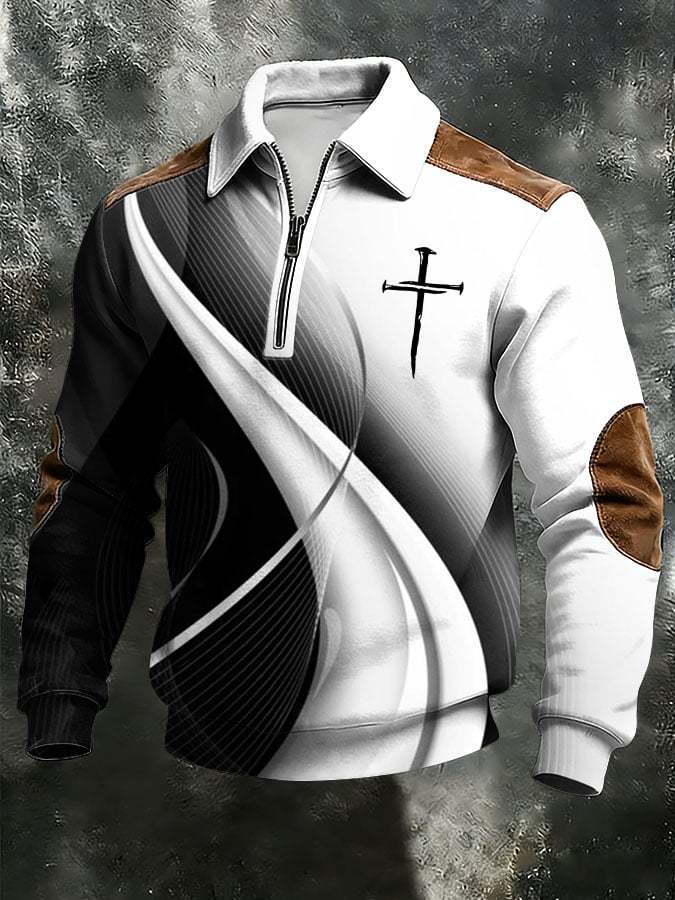 Men's vintage Faith Cross Print Casual Zipper Sweatshirt-Fast Shipping