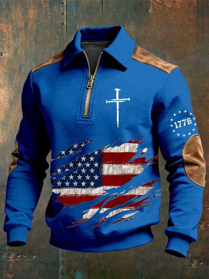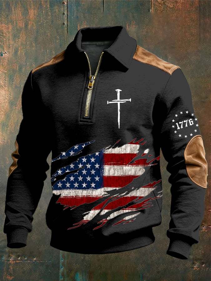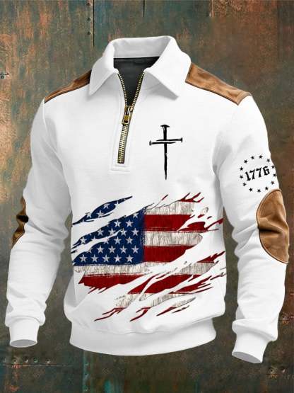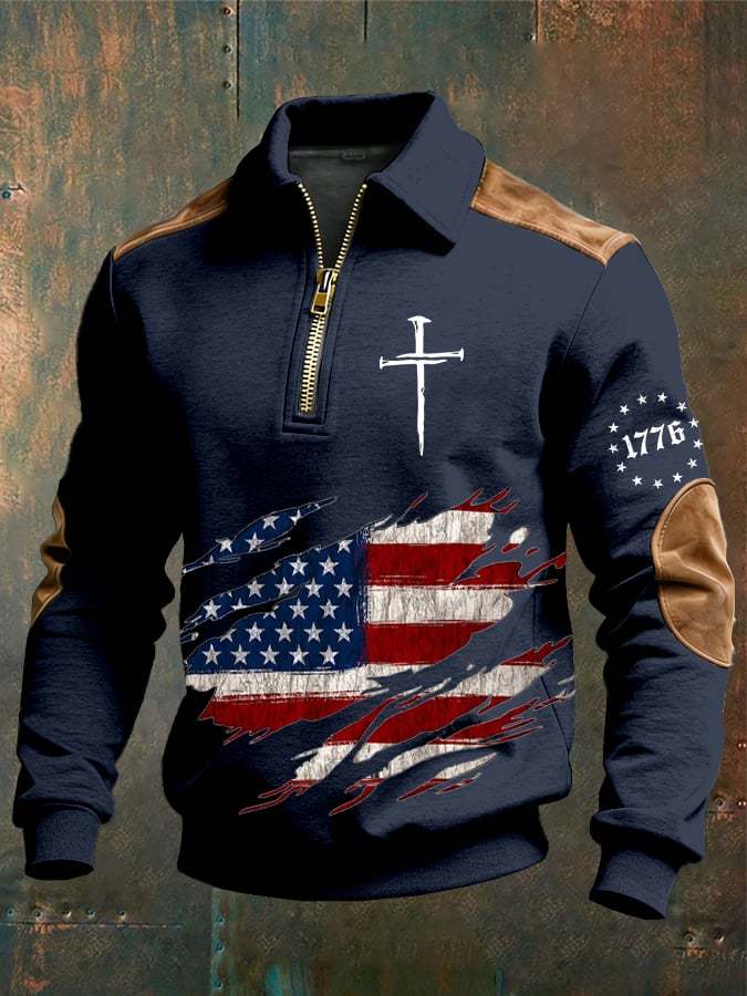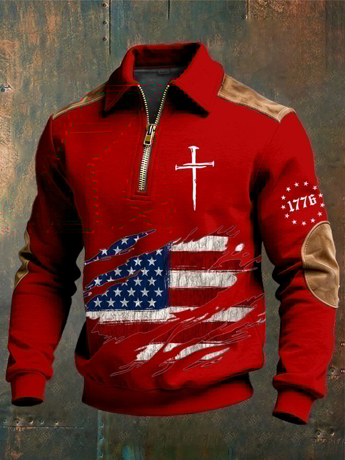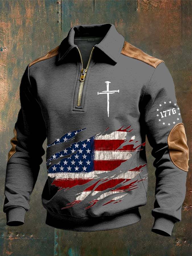 Men's vintage Faith Design Print Casual Zipper Sweatshirt-Fast Shipping