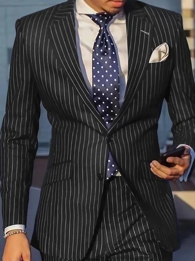 Men's Work Striped Single Breasted Notched Collar Blazer