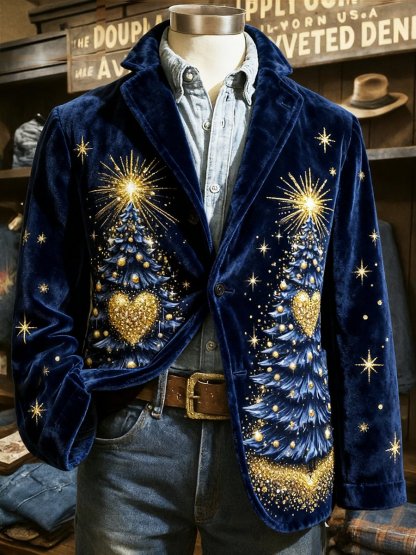 Men's Corduroy Heart Christmas Tree Lapel Suit Jacket