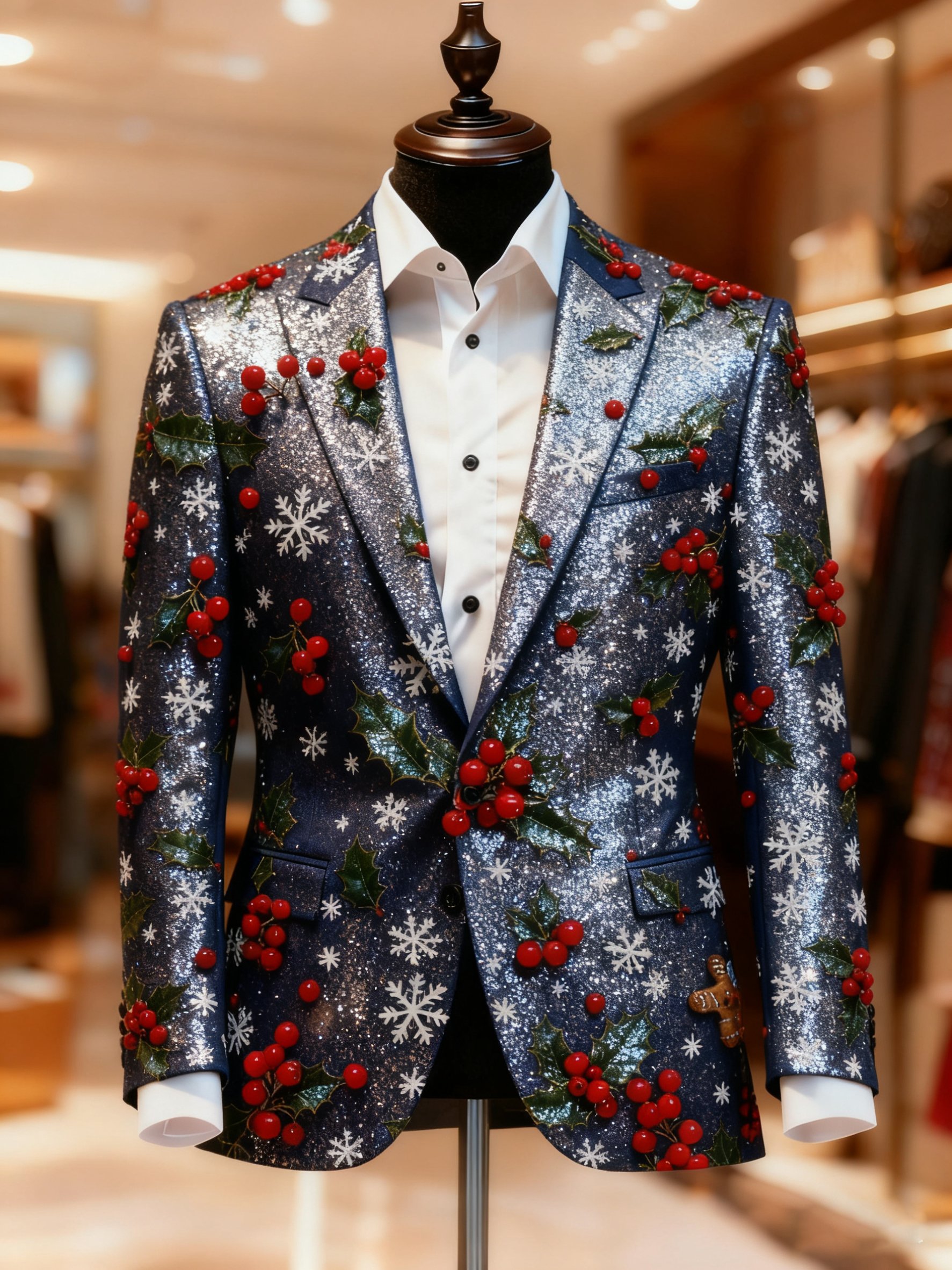 Men's Christmas Casual Print Large Pocket Blazers