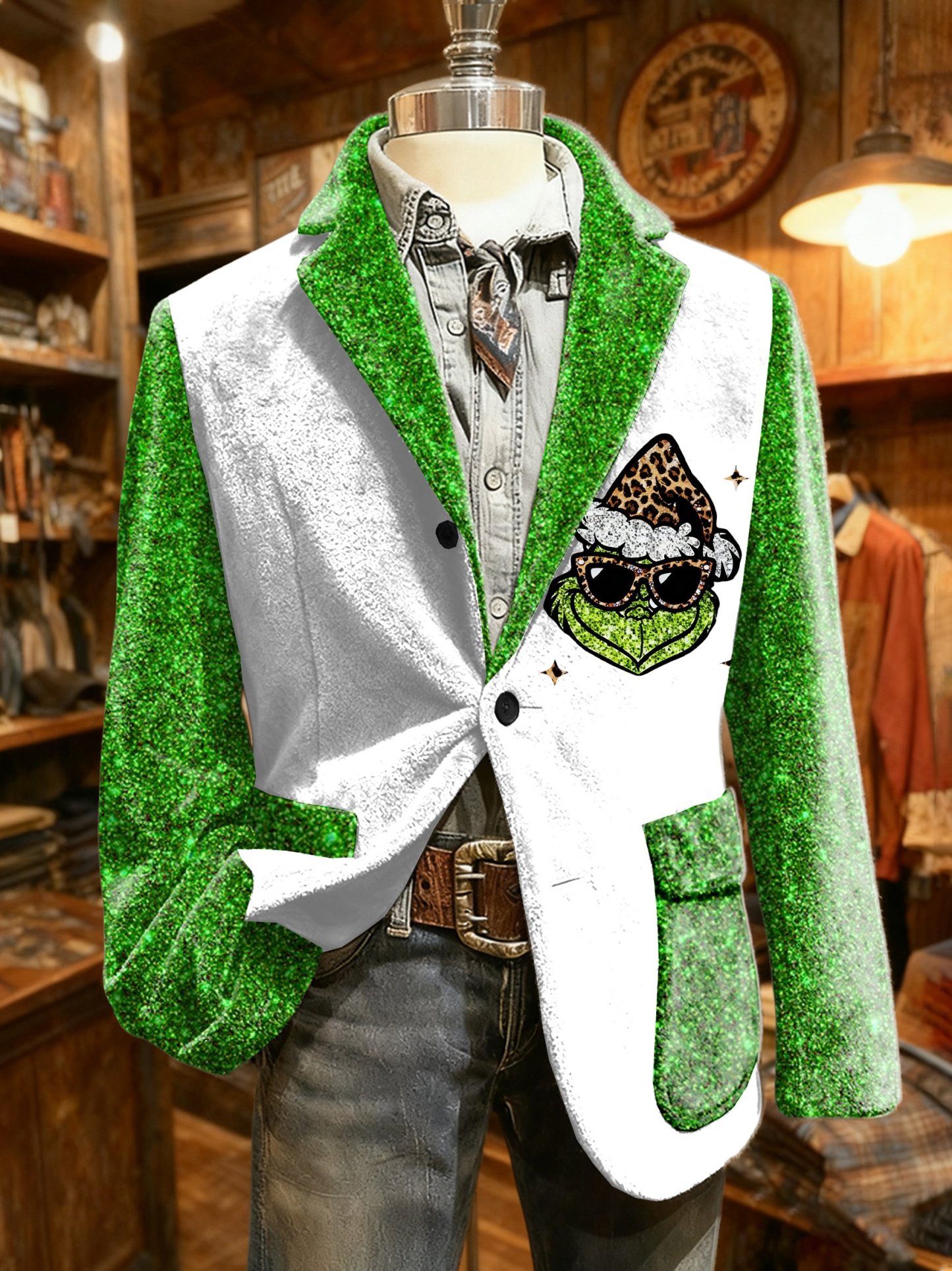Men's Retro Christmas Green Flannel Warm Suit Jacket