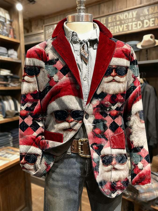 Men's Retro Christmas Art Print Casual Blazer