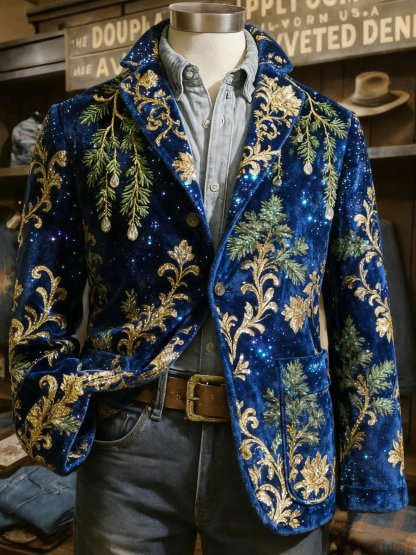 Men's Retro Christmas Evergreen Lapel Suit Jacket