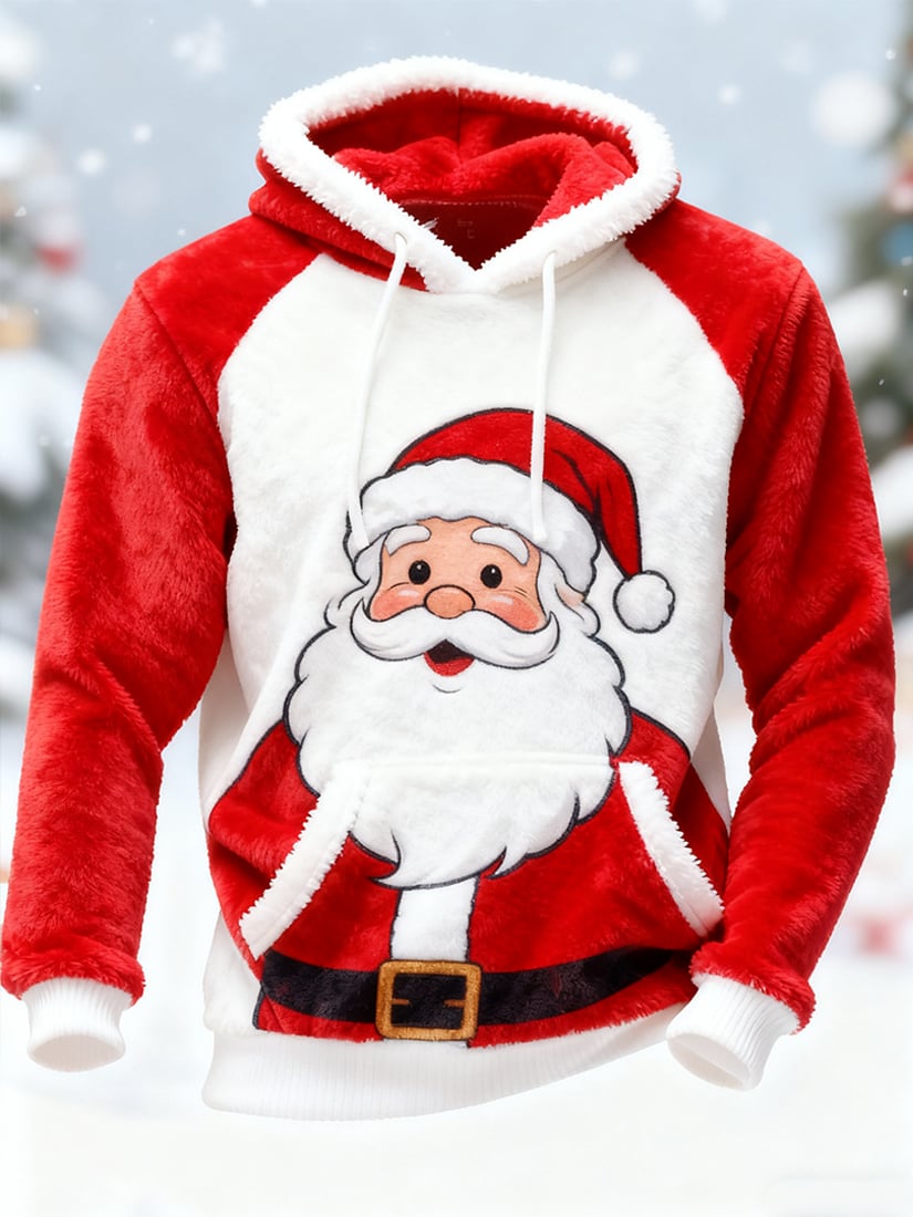 Men's Casual Christmas Comfortable Flannel Warm Hoodie