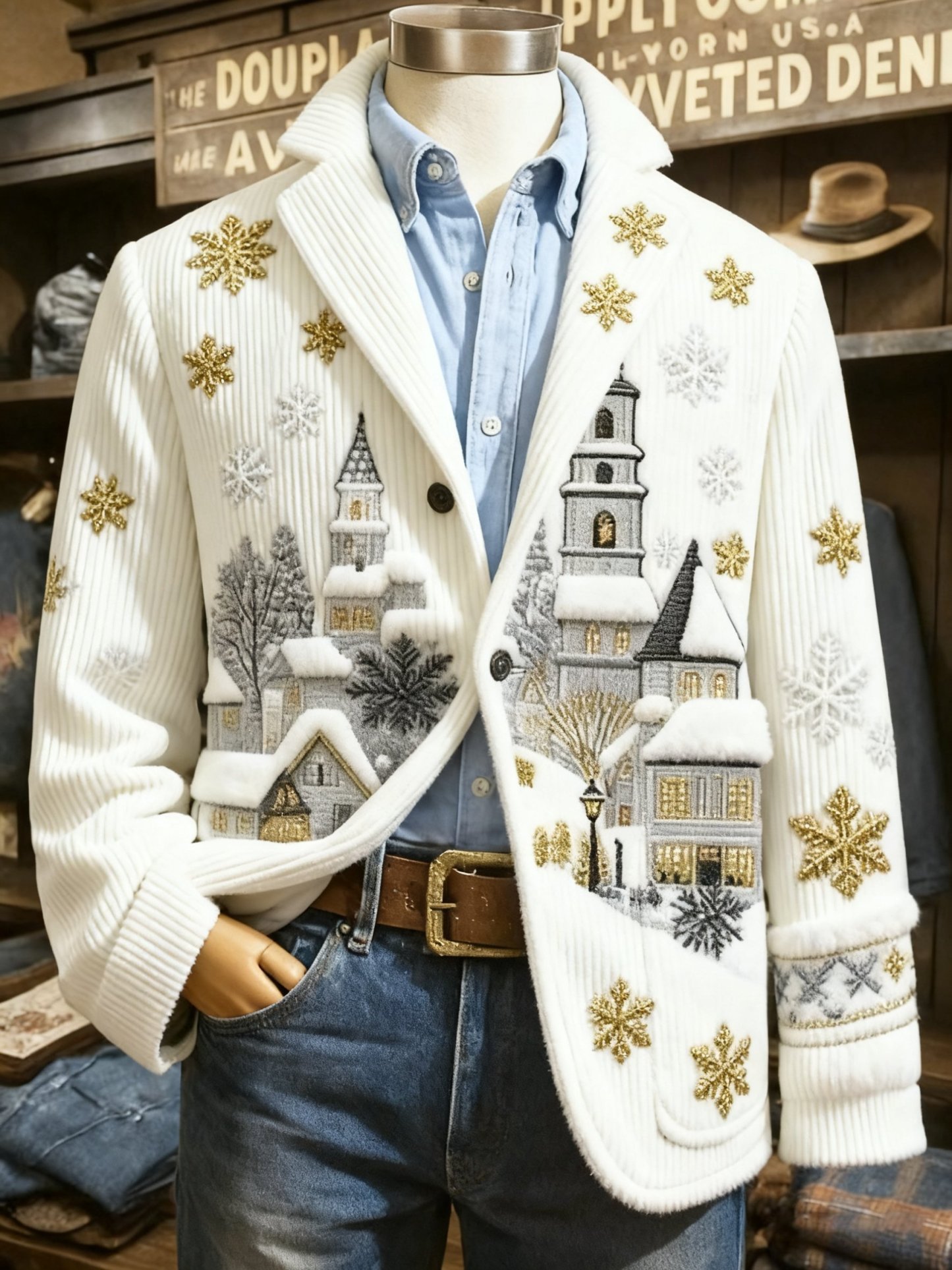 Men's Vintage Christmas Print Casual Jacket