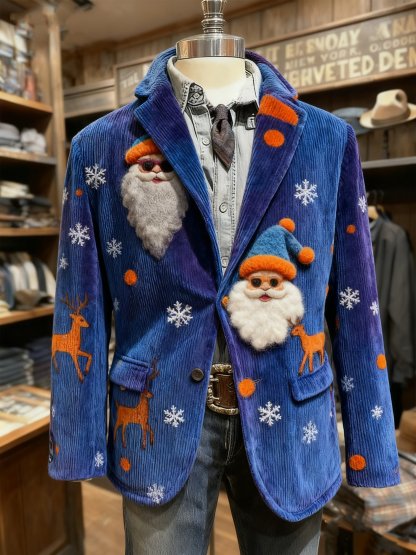 Men's Vintage Christmas Santa Reindeer Print Casual Jacket