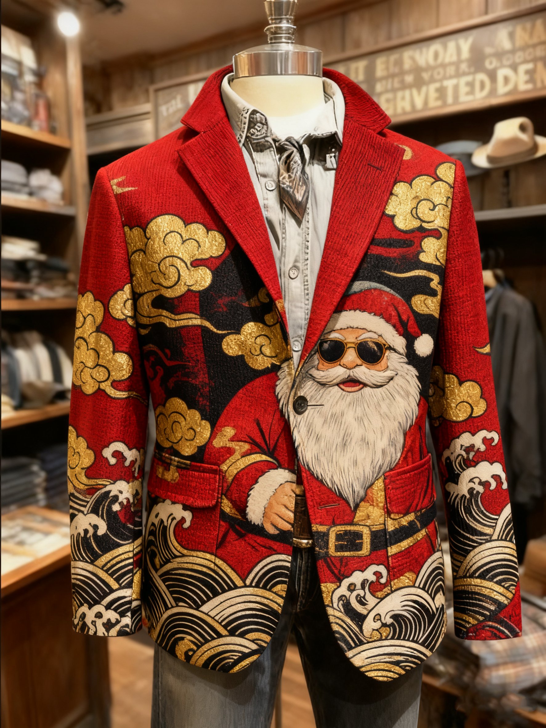 Men's Vintage Ukiyo-e Christmas Santa Print Casual Jacket