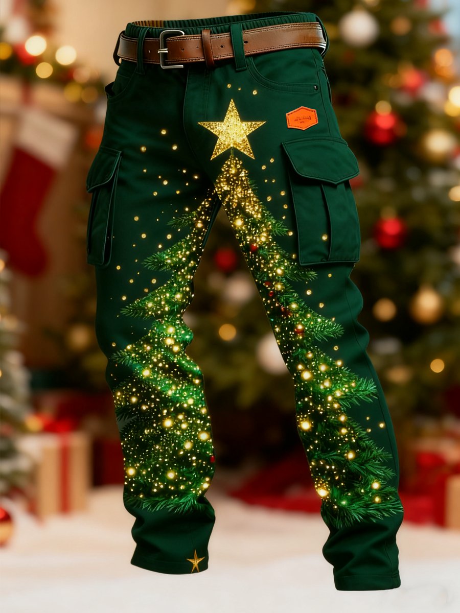 Men's Retro Christmas Evergreen Print Cargo Pants