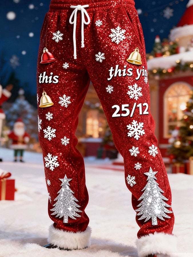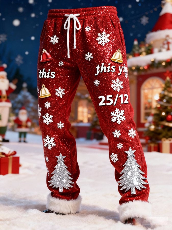 Men's Christmas Patchwork Furry Sequin Print Casual Pants