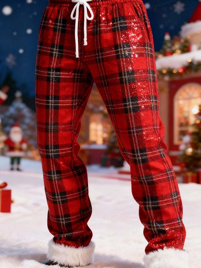 Men's Christmas Patchwork Furry Sequin Print Casual Pants