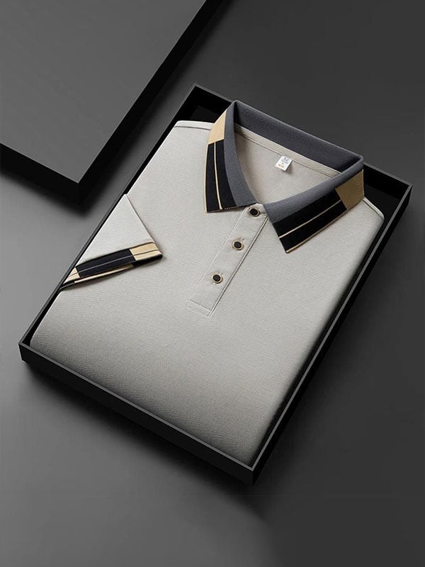 Men's Plaid Business Lapel Short Sleeve Polo Shirt