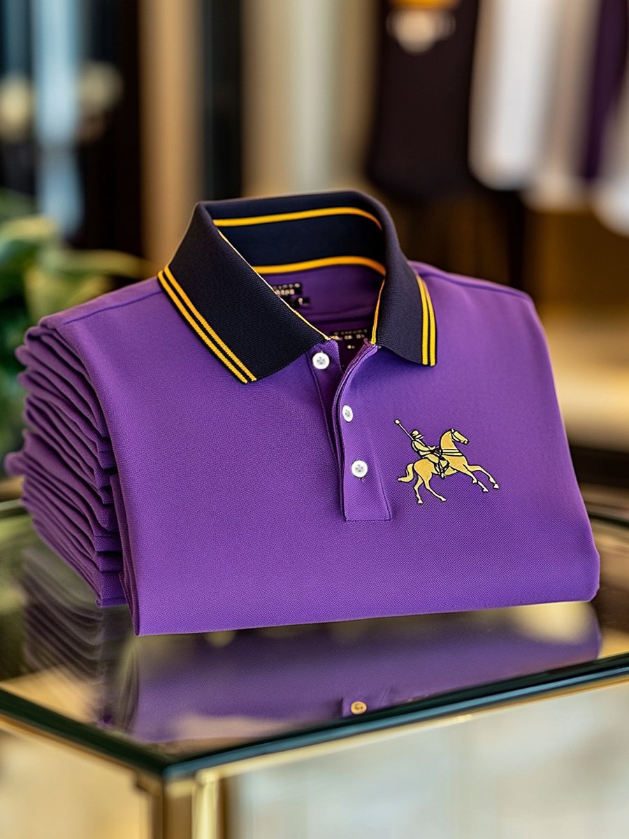 Men's Business Casual Purple Logo Button Short Sleeve Polo Shirt