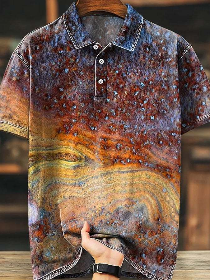 Men'S Casual Color Block Print Polo Shirt Short Sleeve
