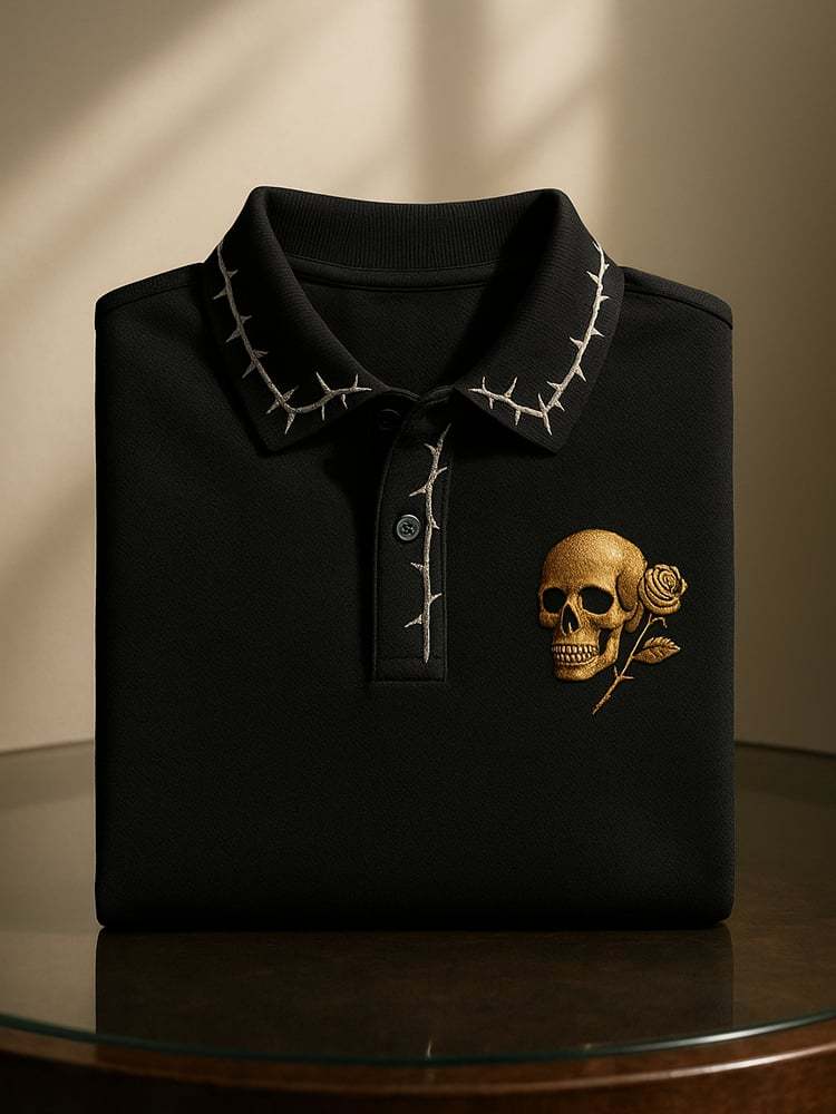 Men's Business Casual Skull Print Button-Down Polo Shirt