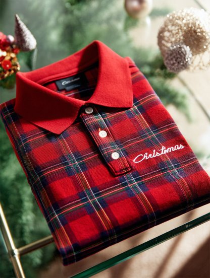 Men's Christmas Plaid Long Sleeve Polo Shirt