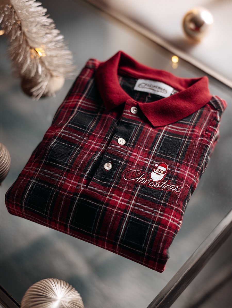 Men's Christmas Plaid Long Sleeve Polo Shirt