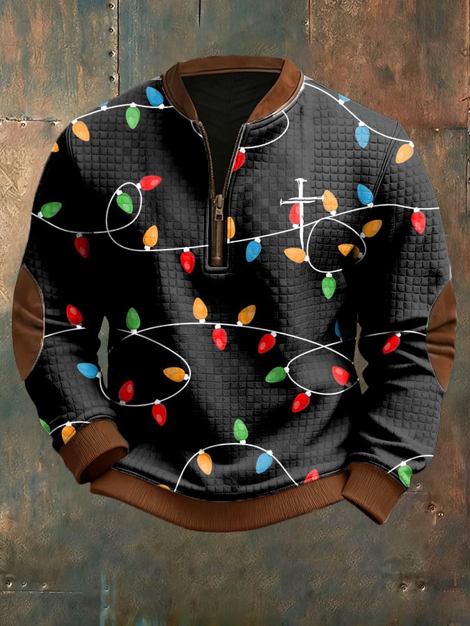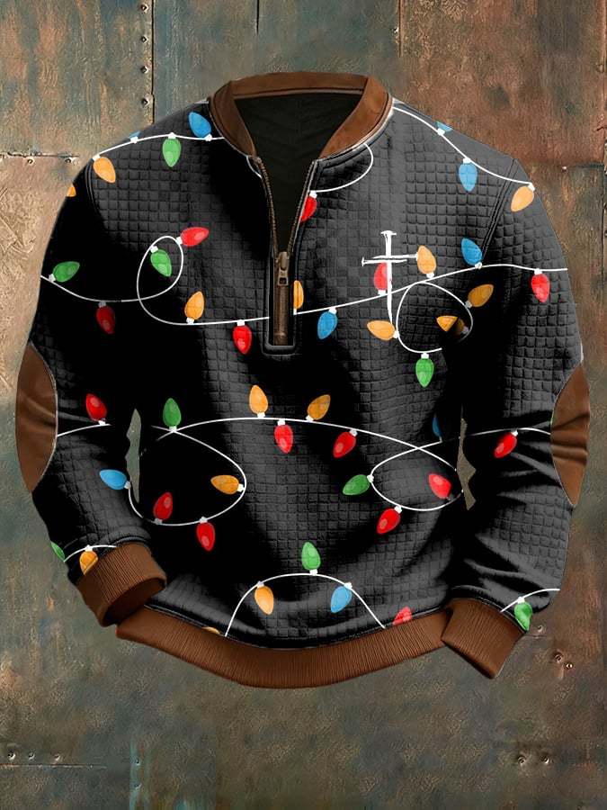 Men's Casual Christmas-themed Checkered Jacquard Sweatshirt