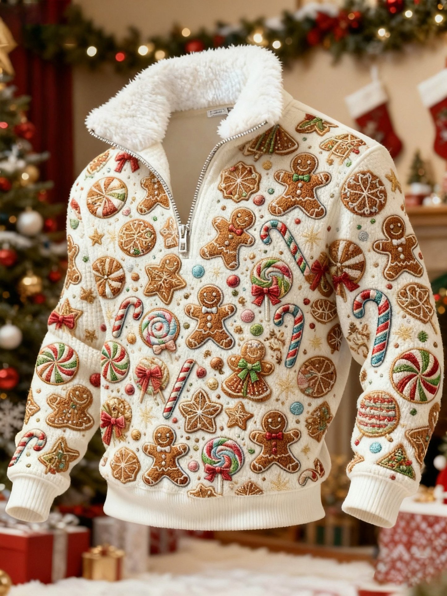Men's Retro Print Christmas Fur Collar Sweatshirt