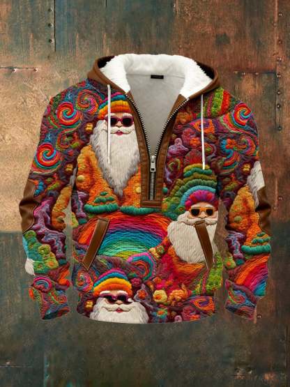 Men's Retro Christmas Art Print Hooded Sweatshirt