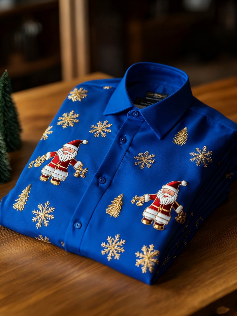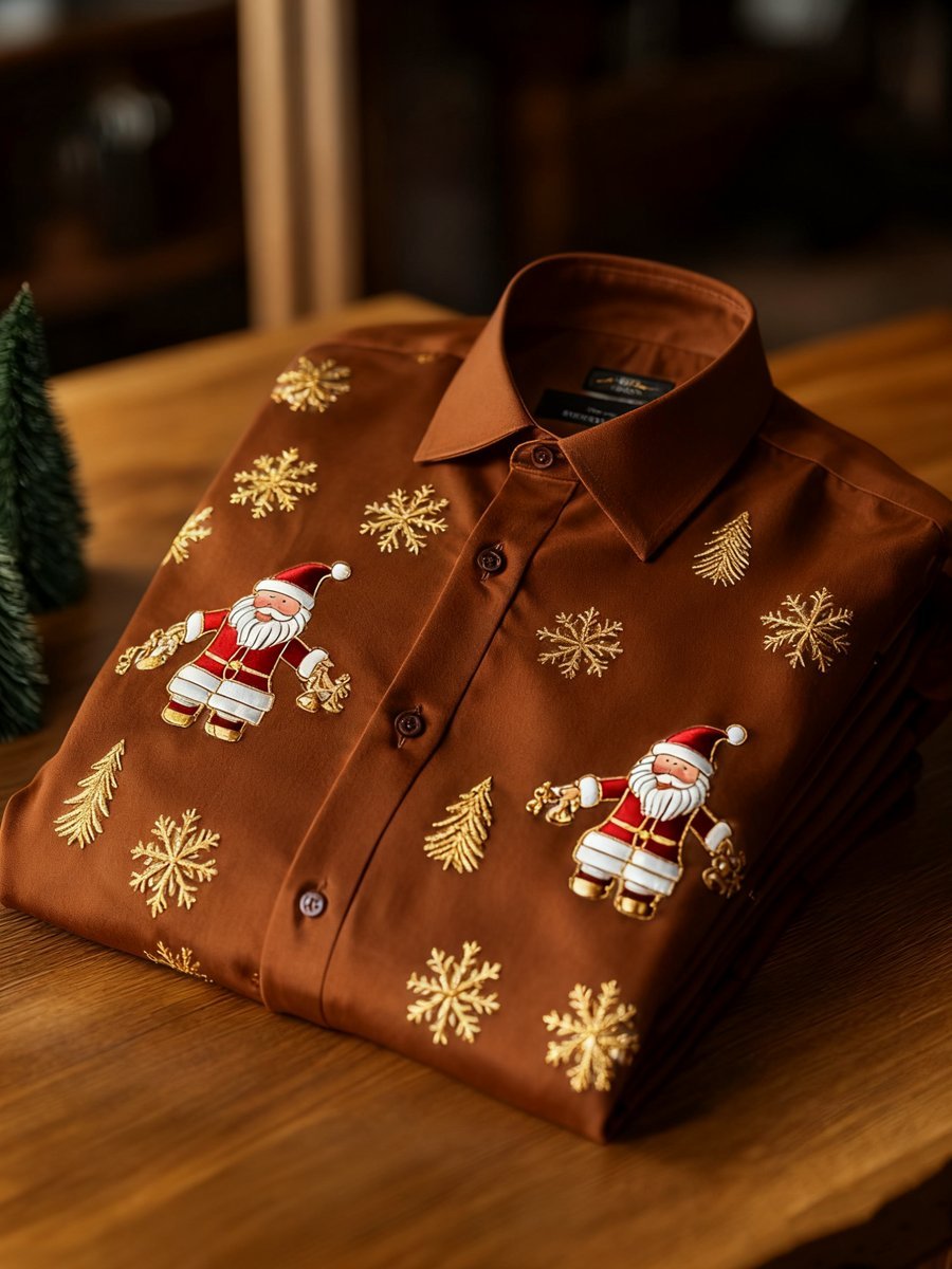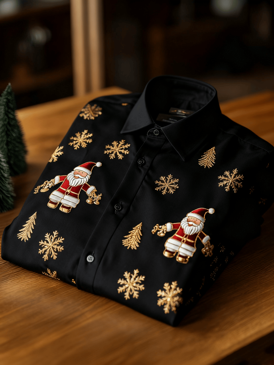 Men's Business Retro New Year Christmas Print Long Sleeve Shirt