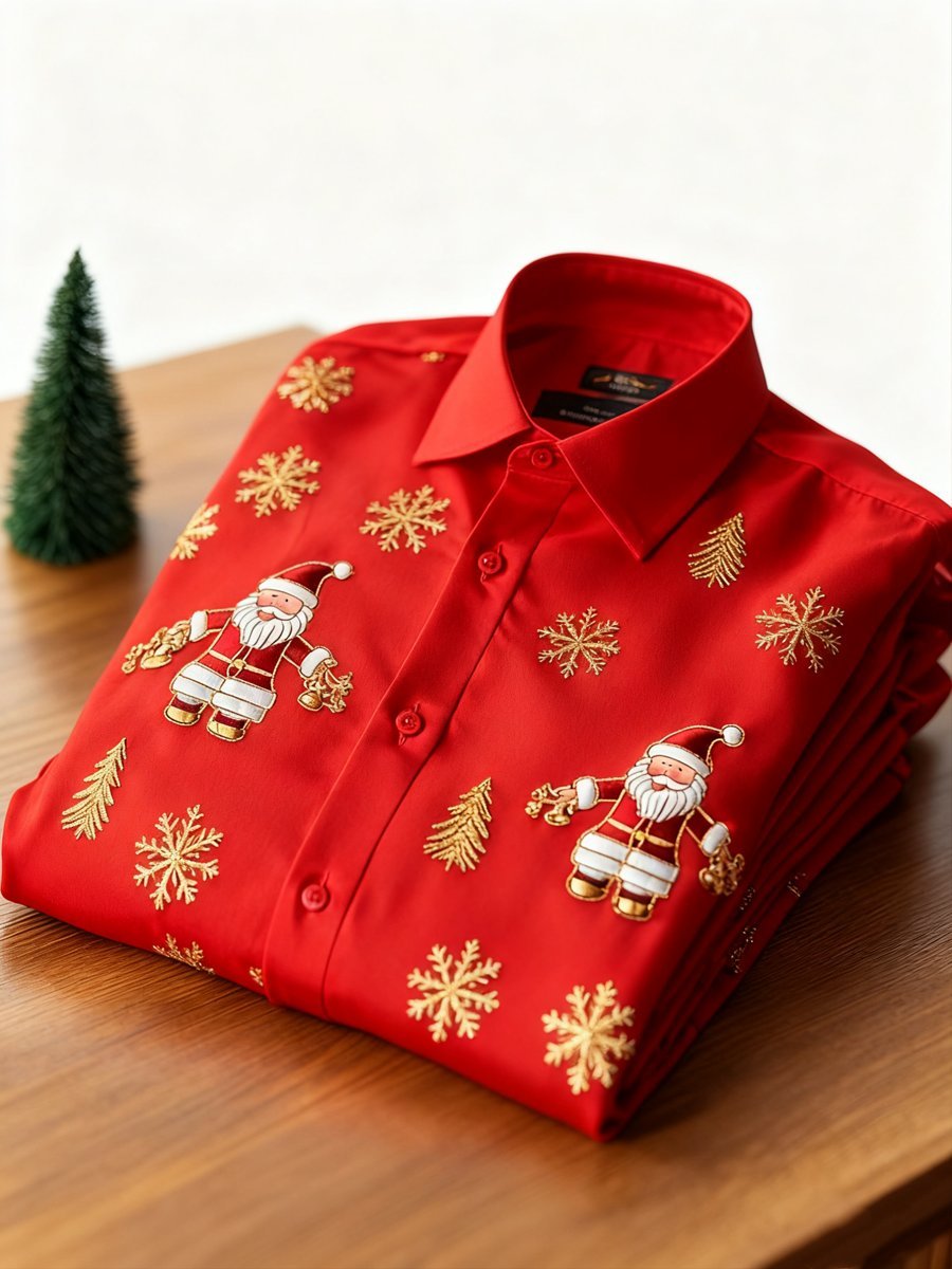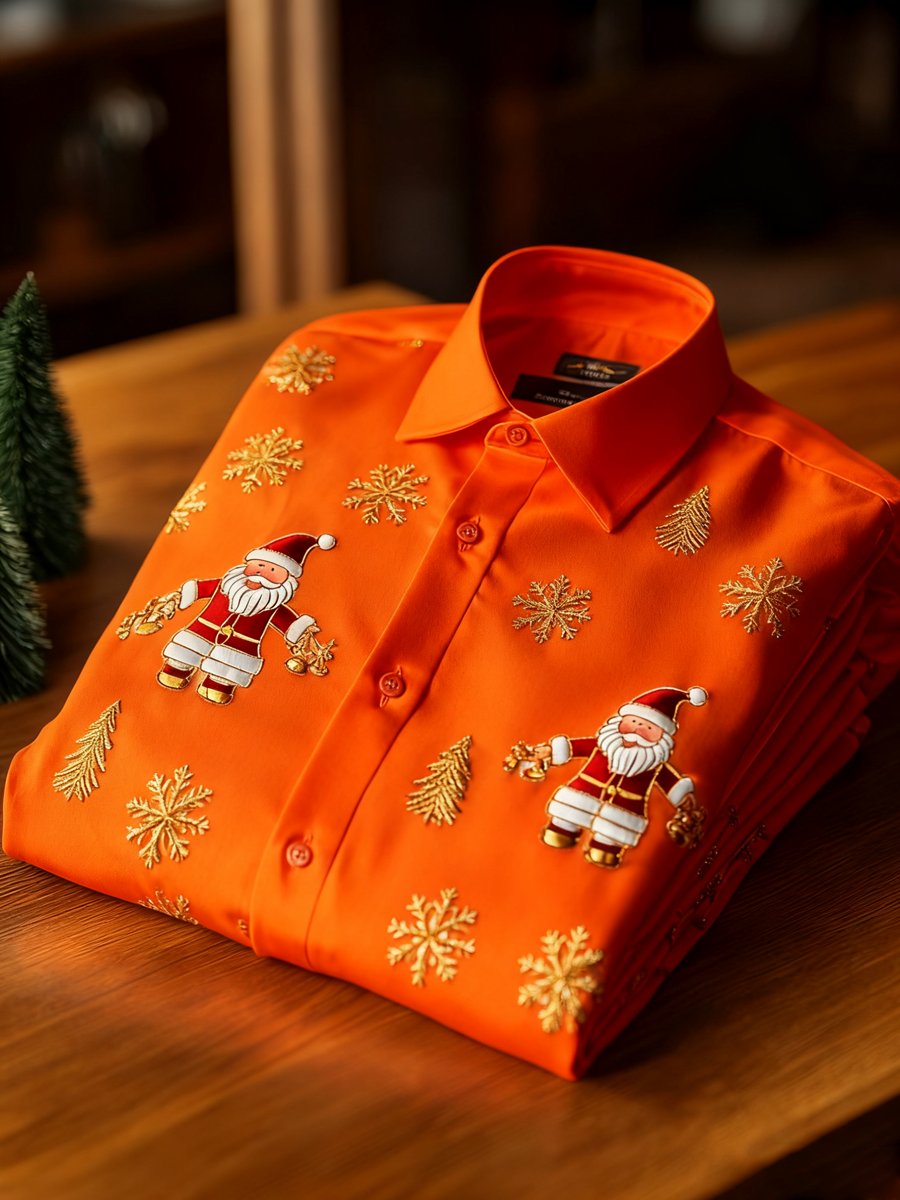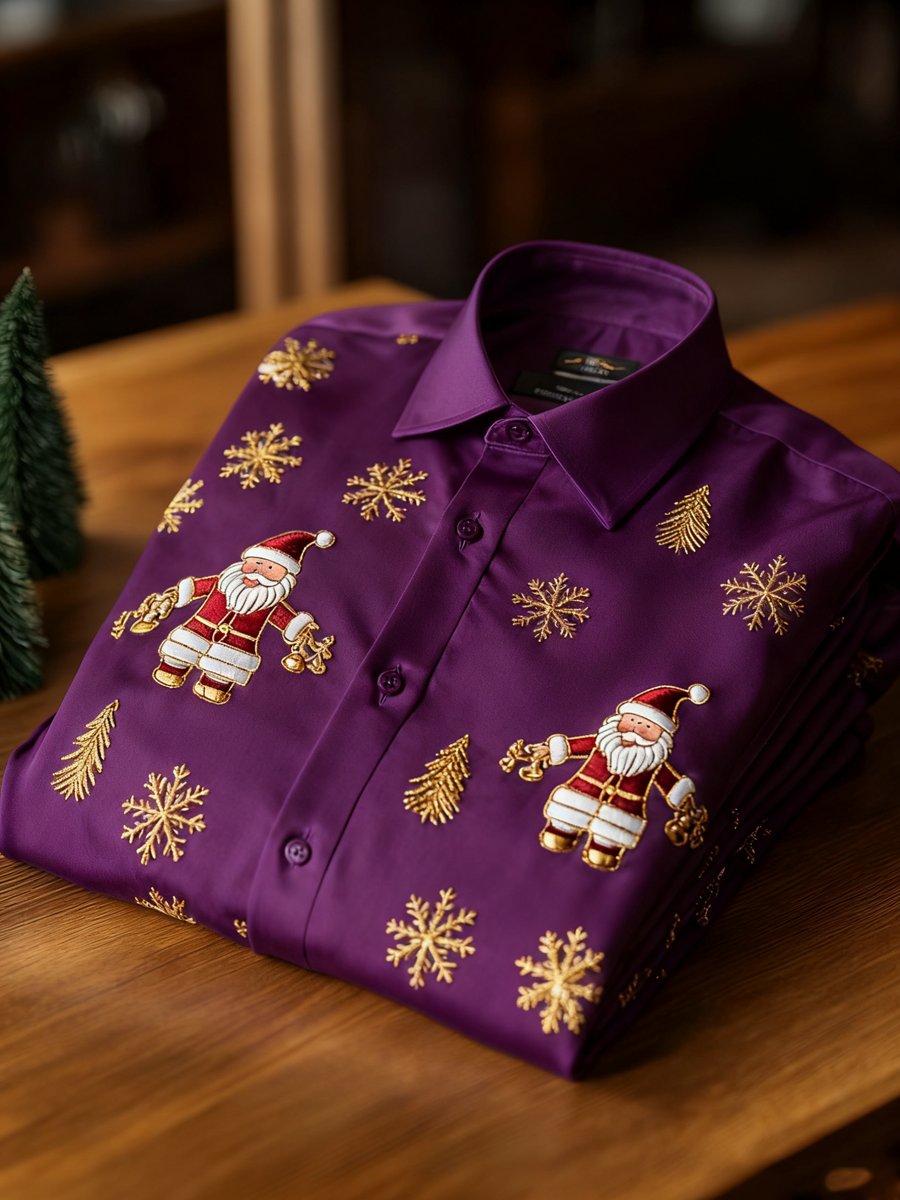 Men's Business Retro New Year Christmas Print Long Sleeve Shirt