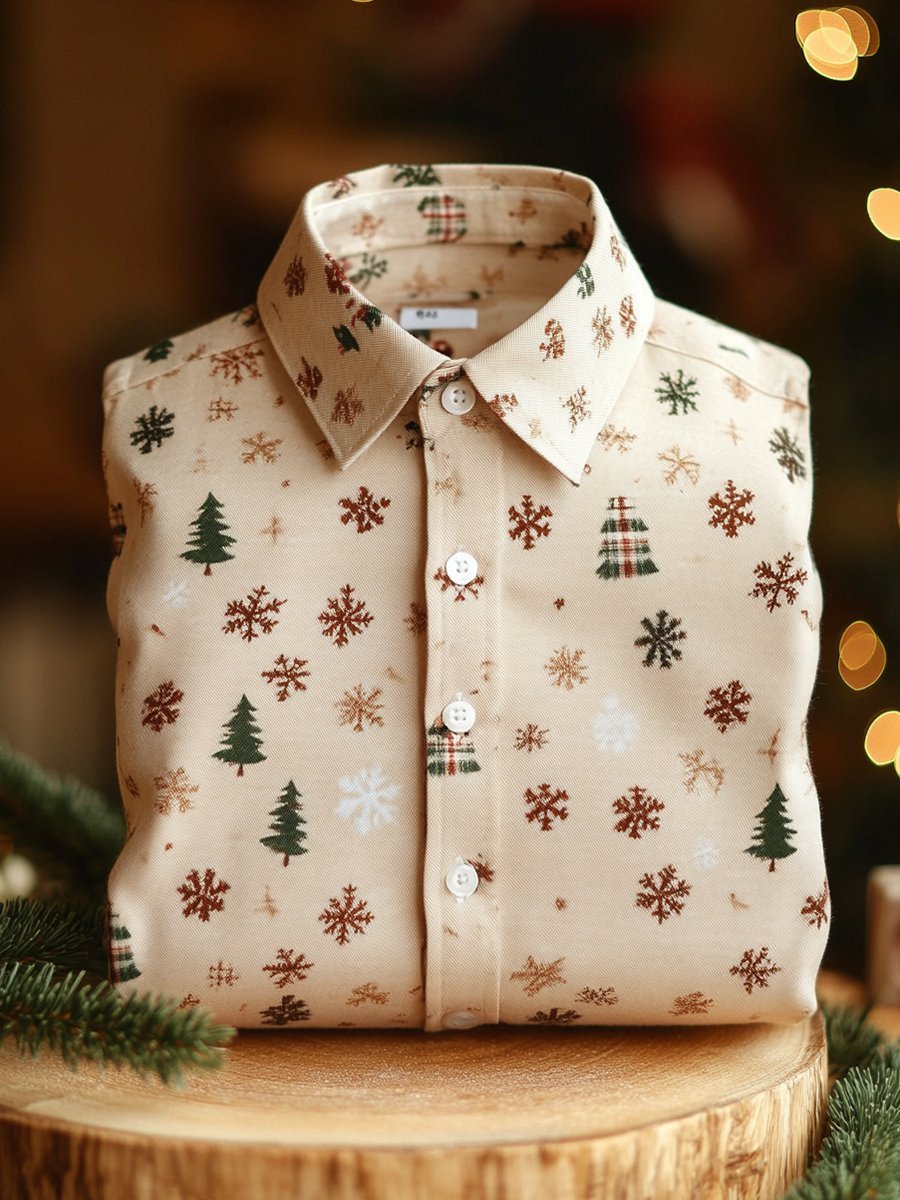 Men's Business Snowflake Christmas Tree Print Christmas Long Sleeve Shirt