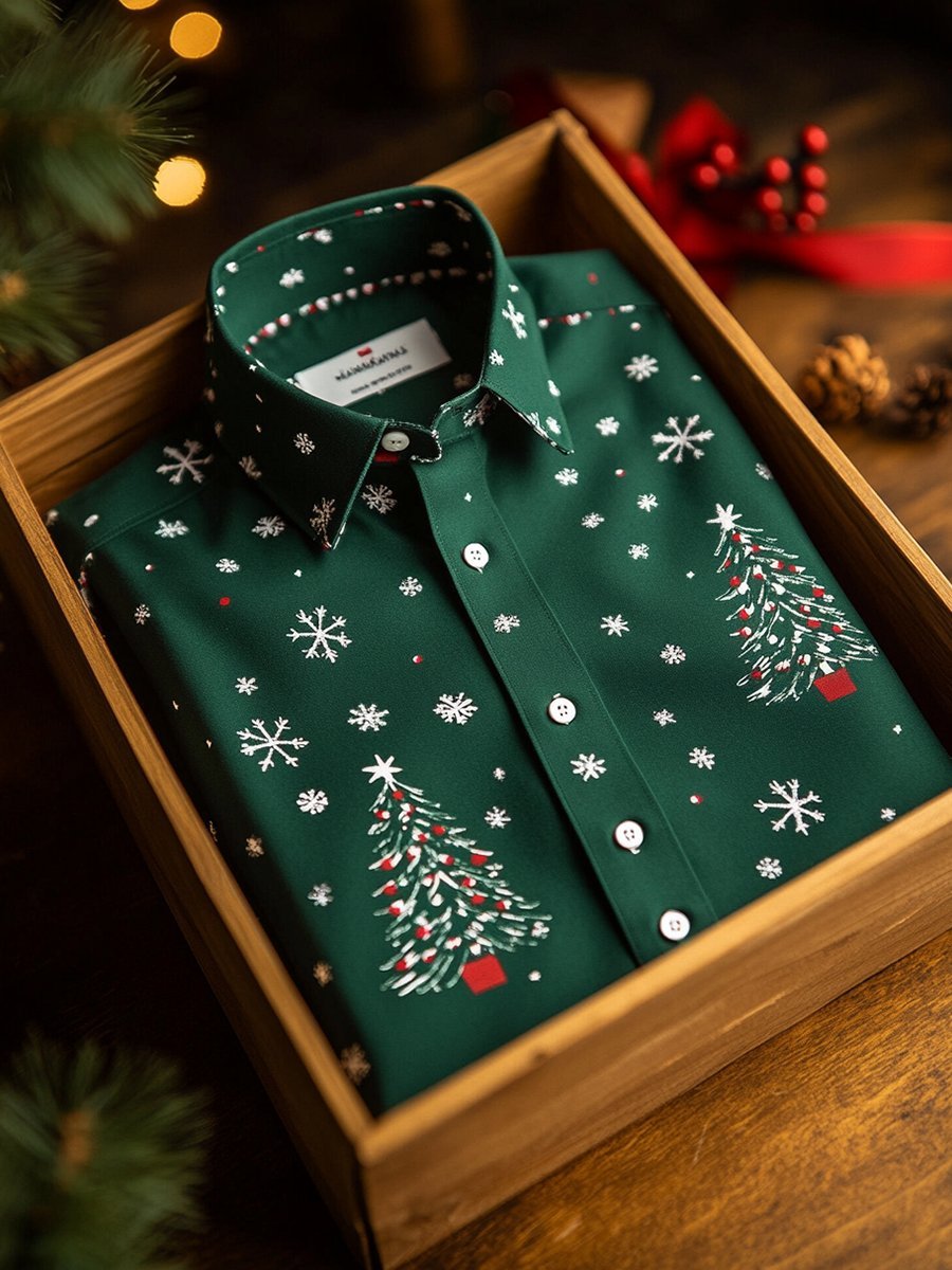 Men's Business Christmas Tree Print Long Sleeve Shirt