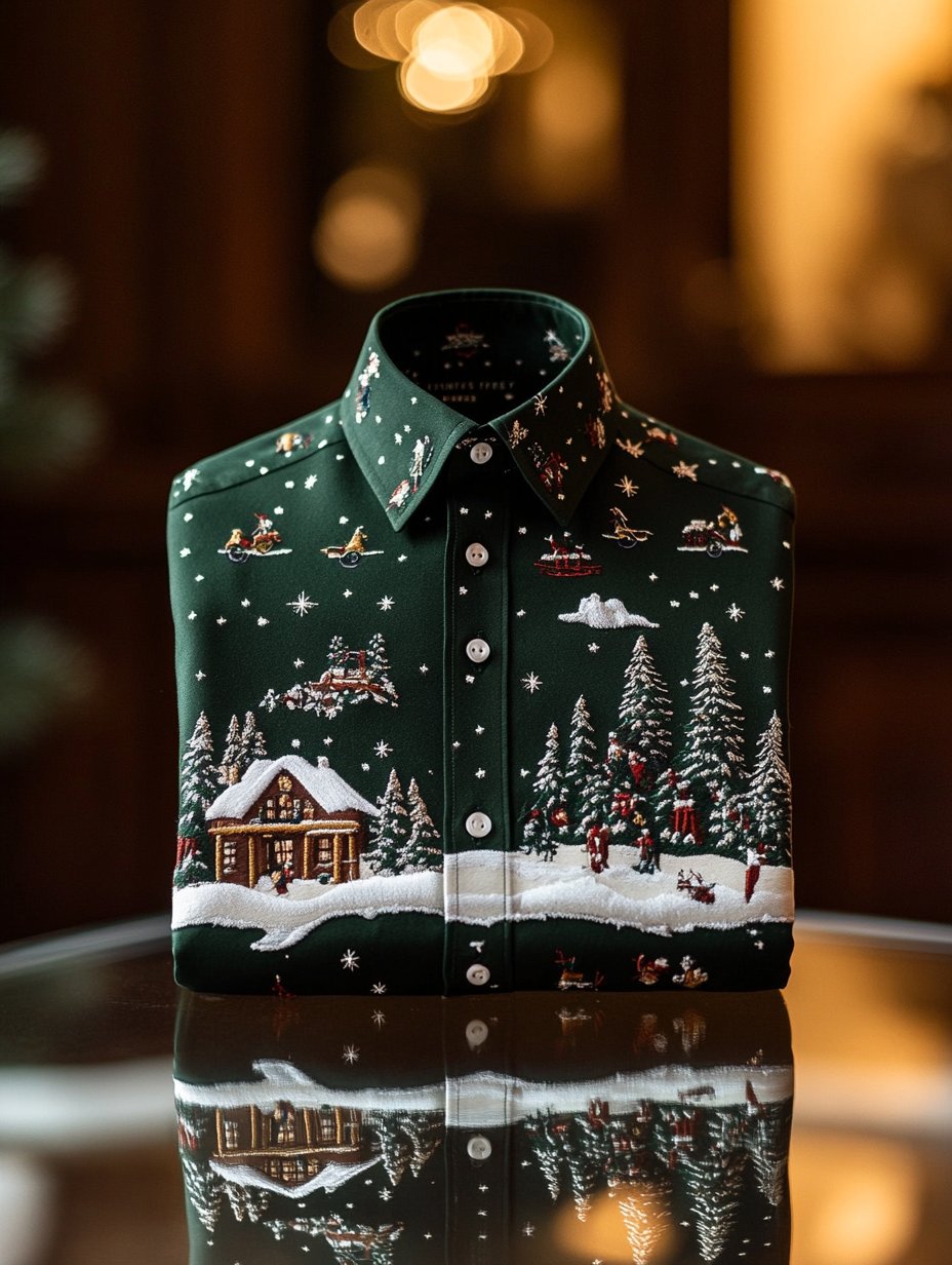 Men's Retro Christmas Print Santa Gifts Long Sleeve Shirt