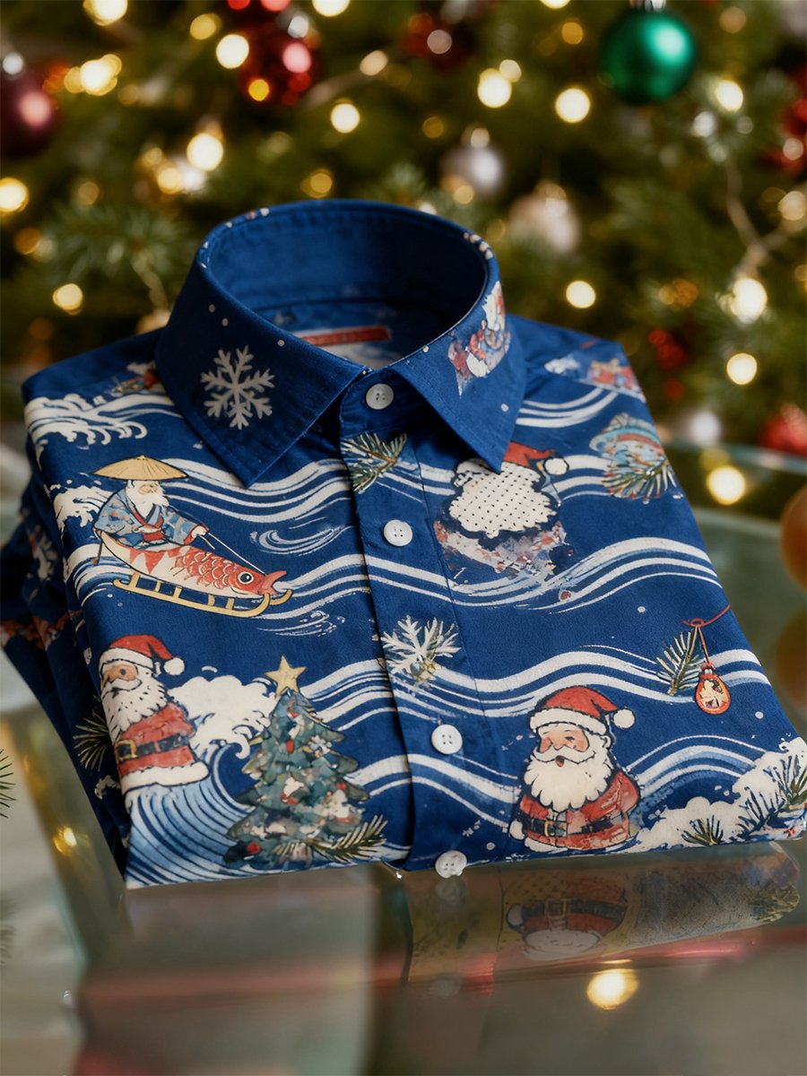 Men's Christmas Ukiyo-E Long Sleeve Button-Down Shirt