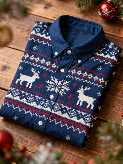 Men's Christmas Long Sleeve Button-Down Shirt