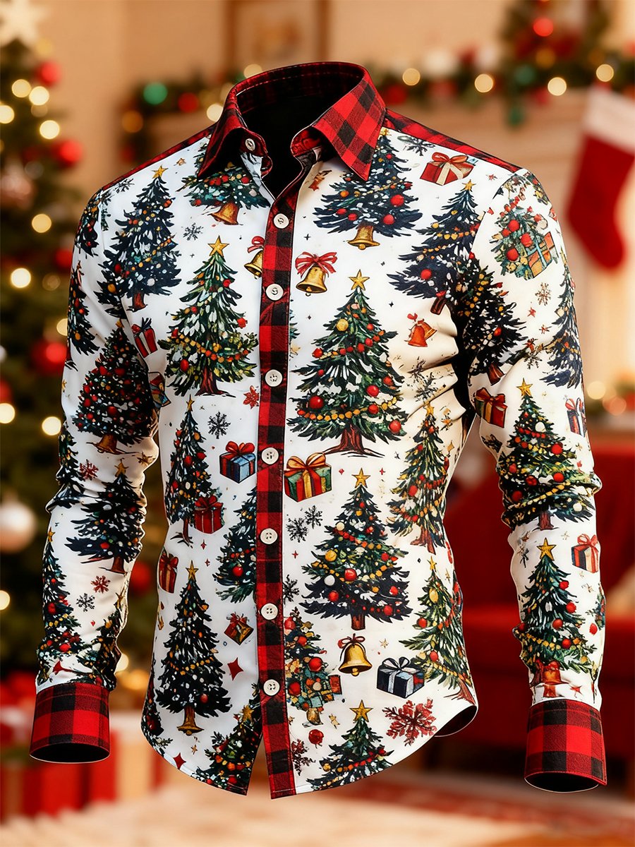Men's Christmas Plaid Art Long Sleeve Shirt