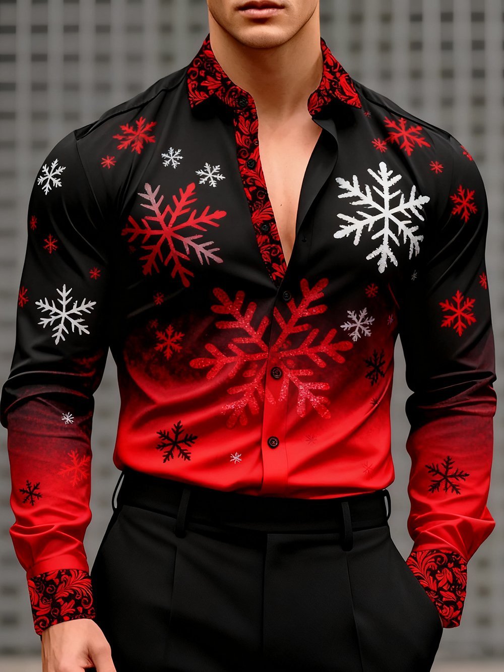 Men's Dark Business Christmas Print Long-Sleeve Shirt