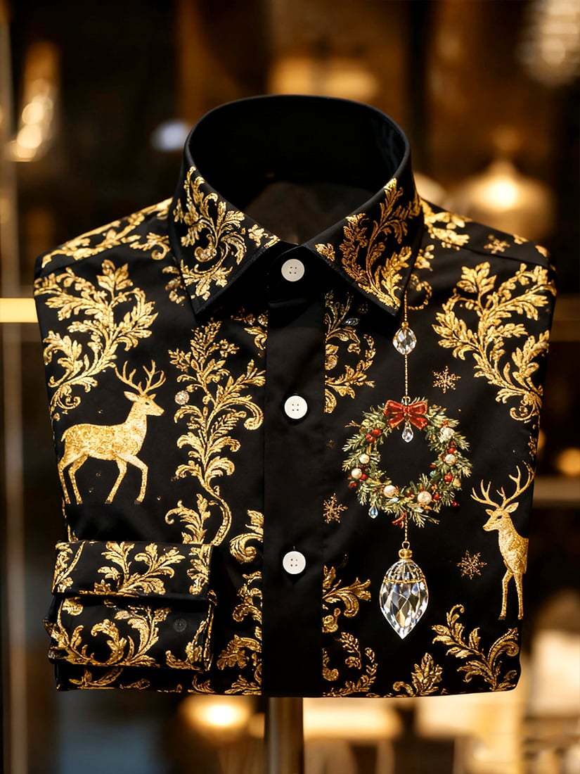 Men's Christmas Holiday Button-Down Long Sleeve Shirt