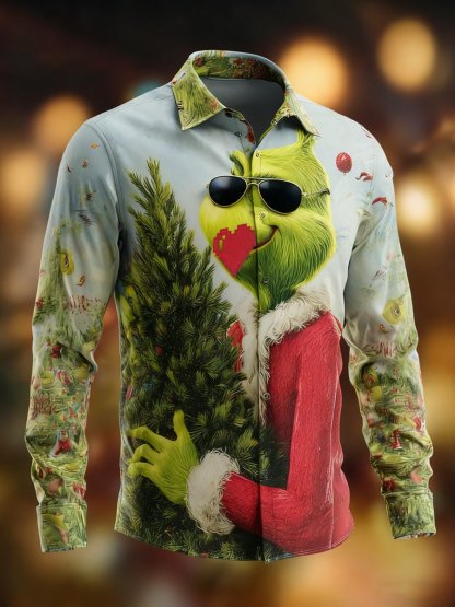 Men's Christmas Green Evergreen Long-Sleeved Shirt