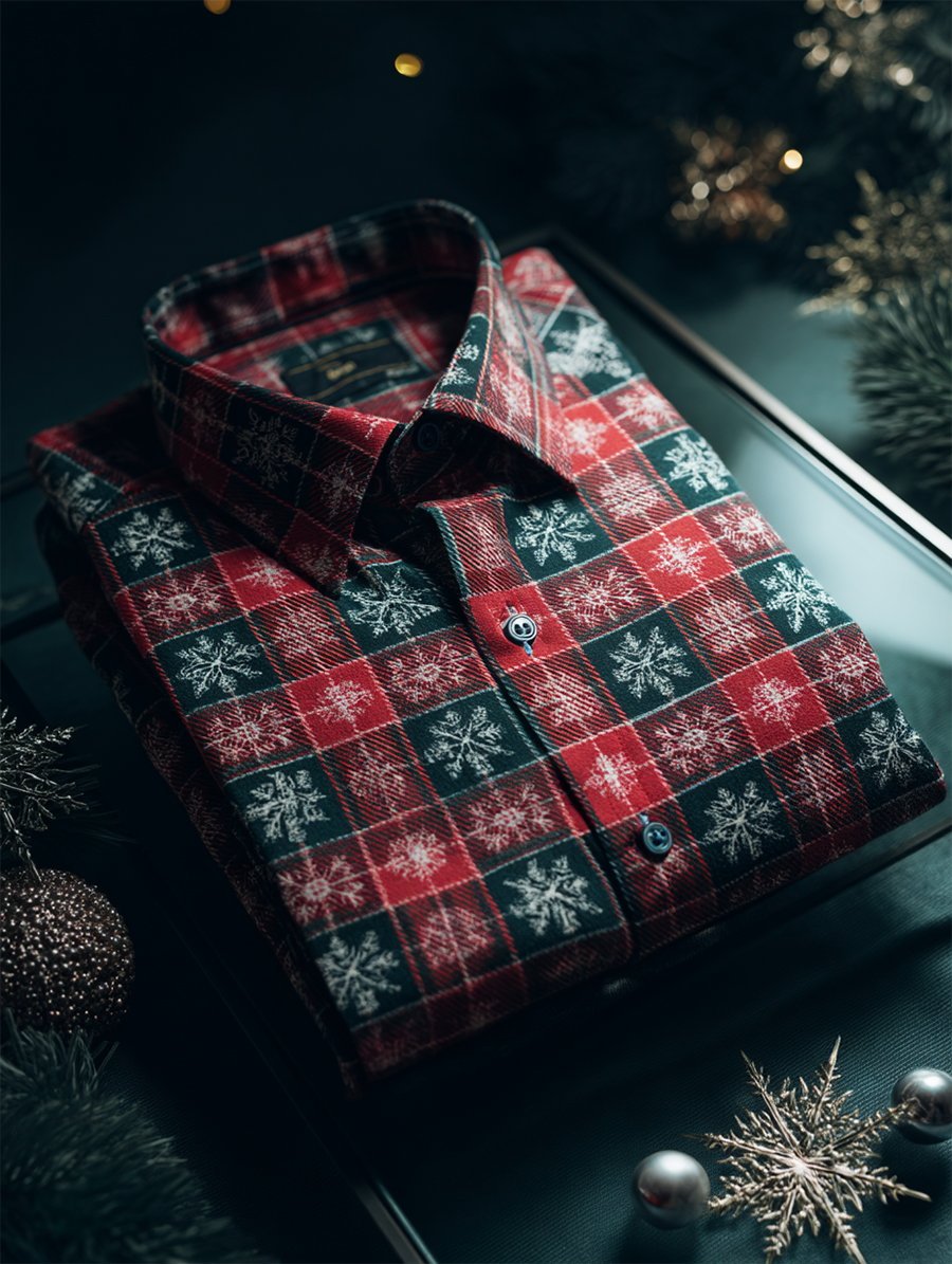 Men's Christmas Plaid Art Long Sleeve Shirt