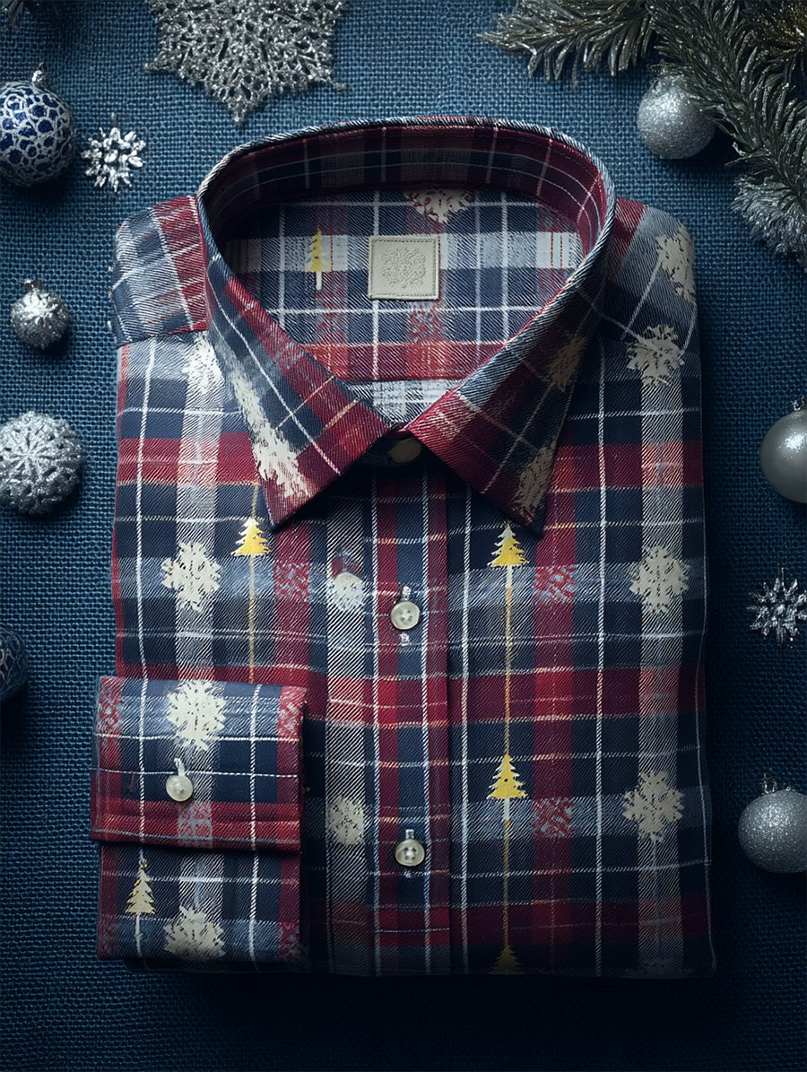 Men's Christmas Plaid Art Long Sleeve Shirt
