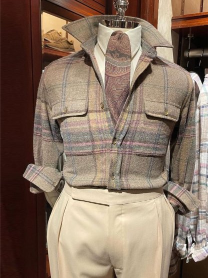Men's Luxury Cotton Linen Plaid Print Long-Sleeved Shirt