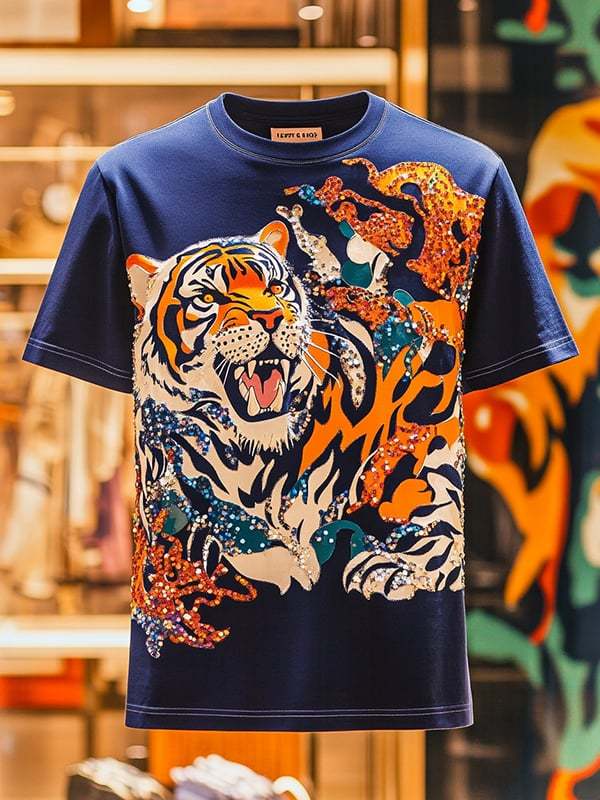 Men's Tiger Sequin Business Print Short Sleeve T-Shirt