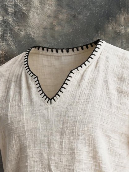 Men's Retro Ethnic-Style Cotton-Linen V-Neck Short-Sleeve T-Shirt