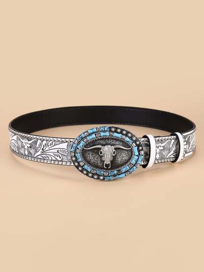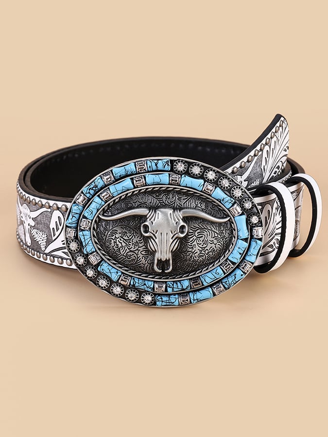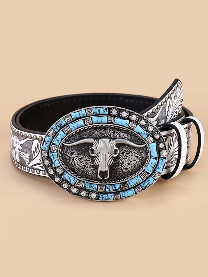 Retro Western Style Cow Head Beaded Embossed Decorative Belt
